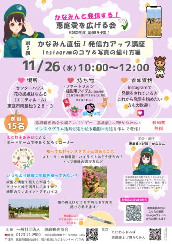 第3回 かなみんと発信する!恵庭愛を広げる会【かなみん直伝!Instagram発信力アップ講座】チラシ