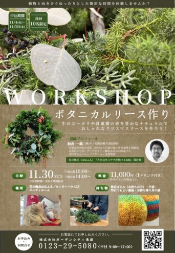 柏倉一統さんによりますボタニカルなリースづくりのワークショップが開催されます。