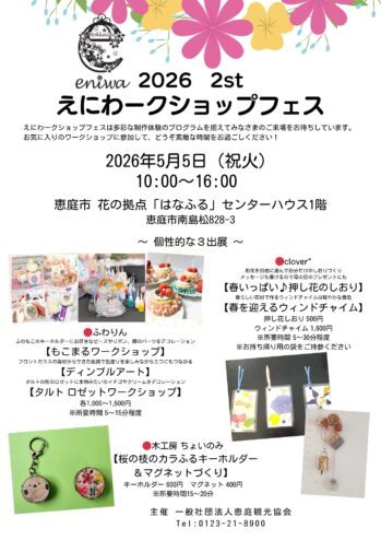 恵庭市花の拠点「はなふる」センターハウスにて、「えにわークショップフェス」を開催します。